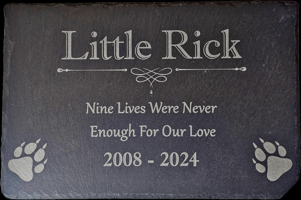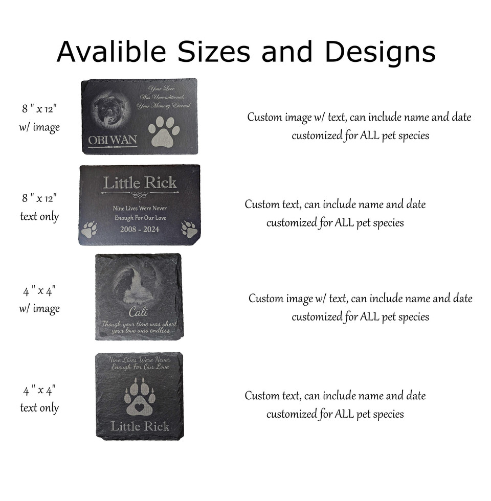 Honor the memory of your beloved pet with our handcrafted, laser-engraved slate marker. Made from high-quality natural slate, this memorial marker serves as a beautiful and lasting tribute, perfect for outdoor gardens, pet burial sites, or indoor remembrance spaces. As pet lovers ourselves, we know how important it is to remember the pets who’ve touched our lives, and we’ve created this marker to help you cherish those memories.